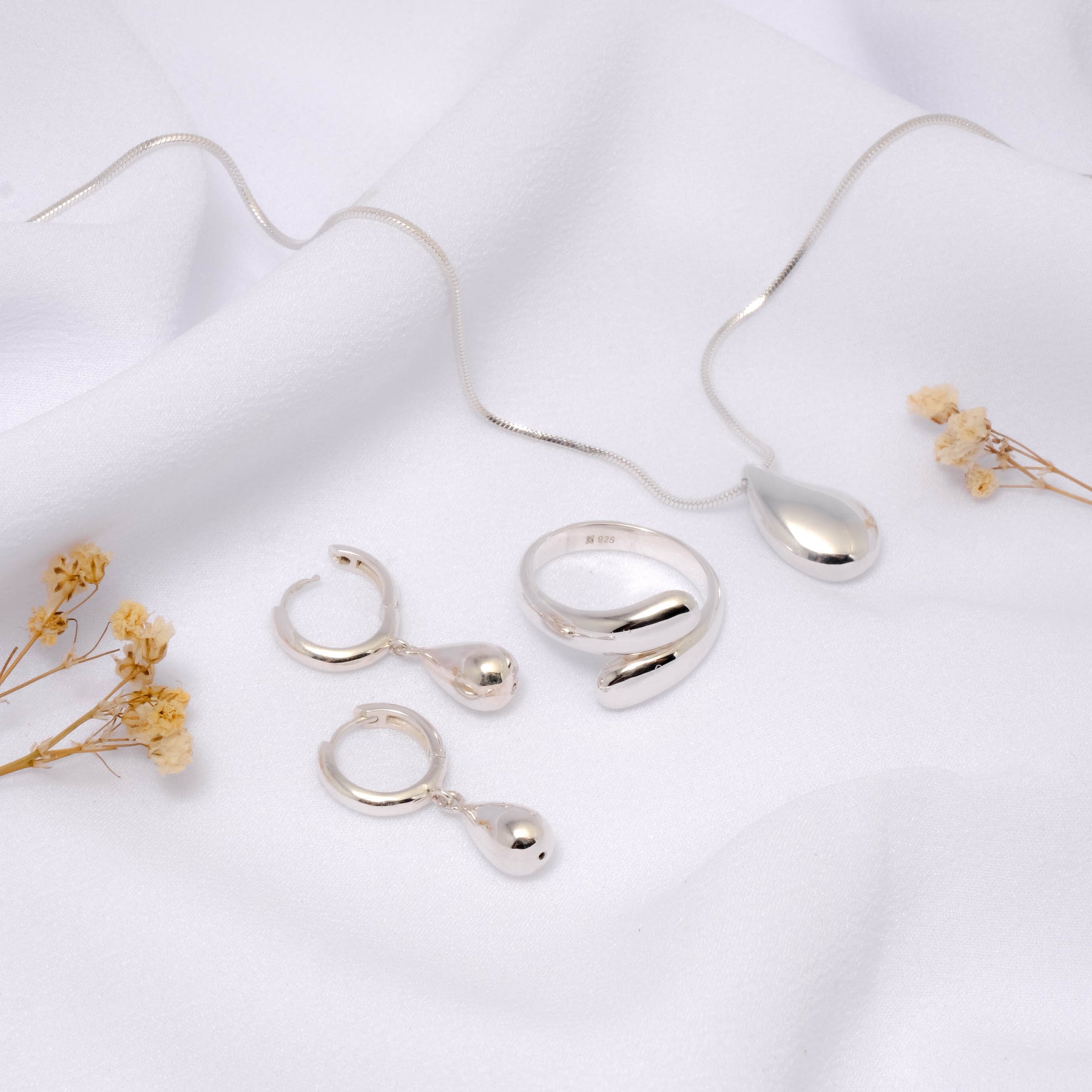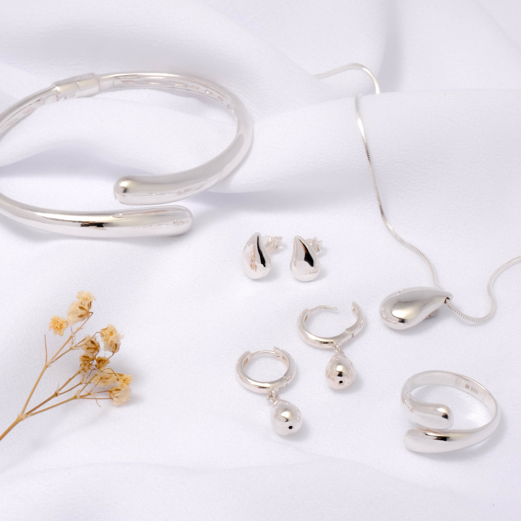 Crafted from 925 Sterling Silver, this collection features shapes inspired by natural water drops, symbolizing purity, balance, and eternal beauty.