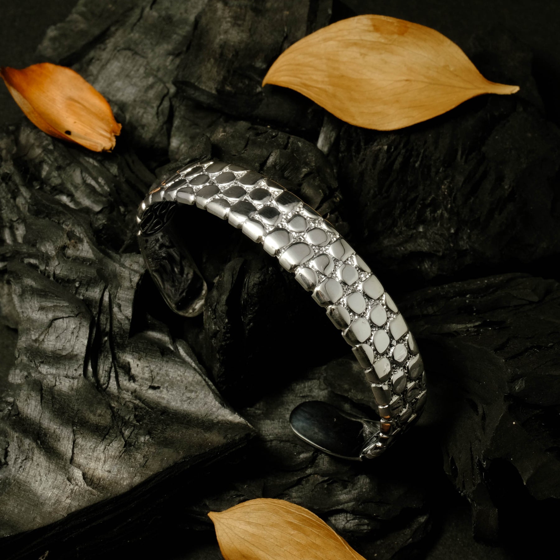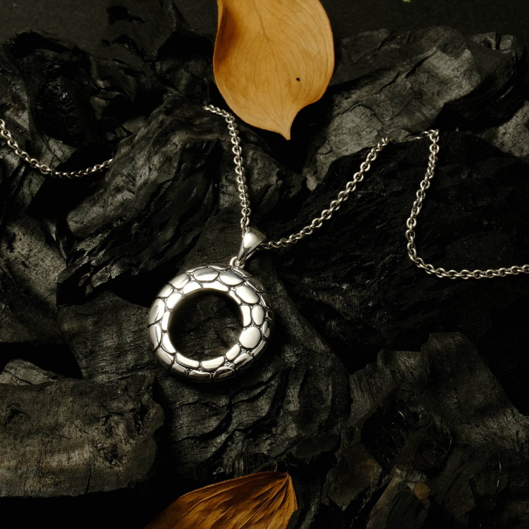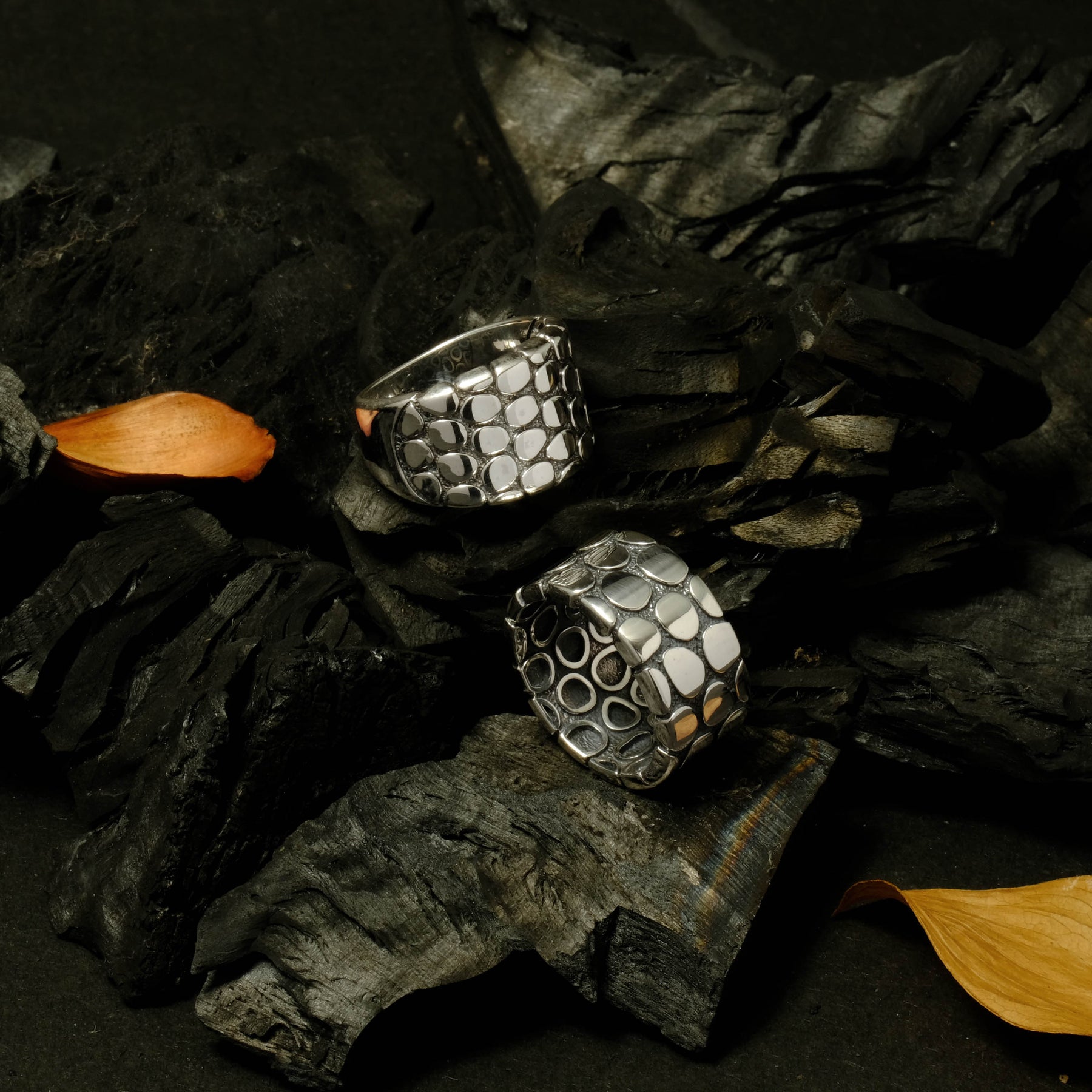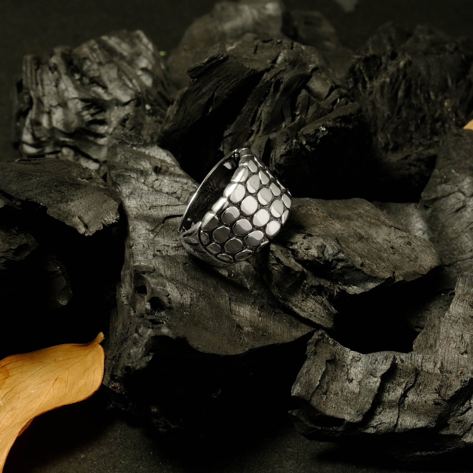 The oxidized silver finish adds an artistic contrast, accentuating the natural details of every piece. With its minimalist yet captivating character, the Pebble Collection is available in bangles, pendants, earrings, and rings — perfect for everyday wear or as a statement piece for special moments.