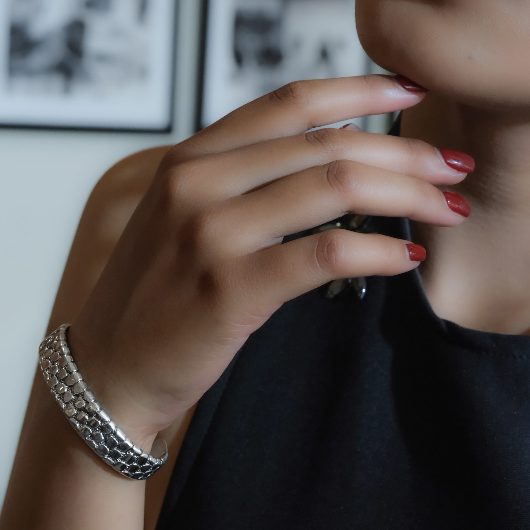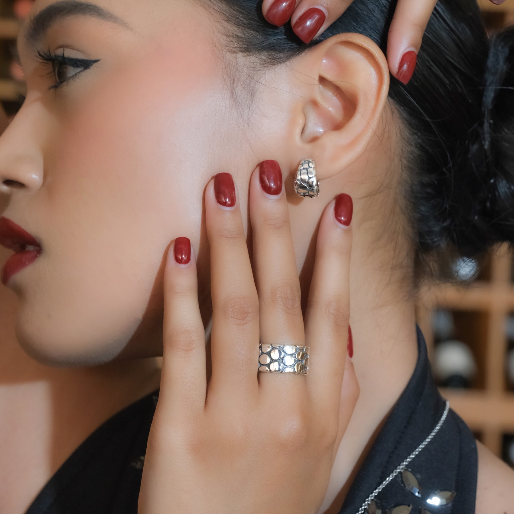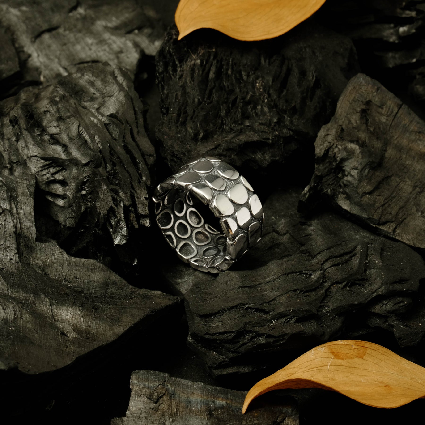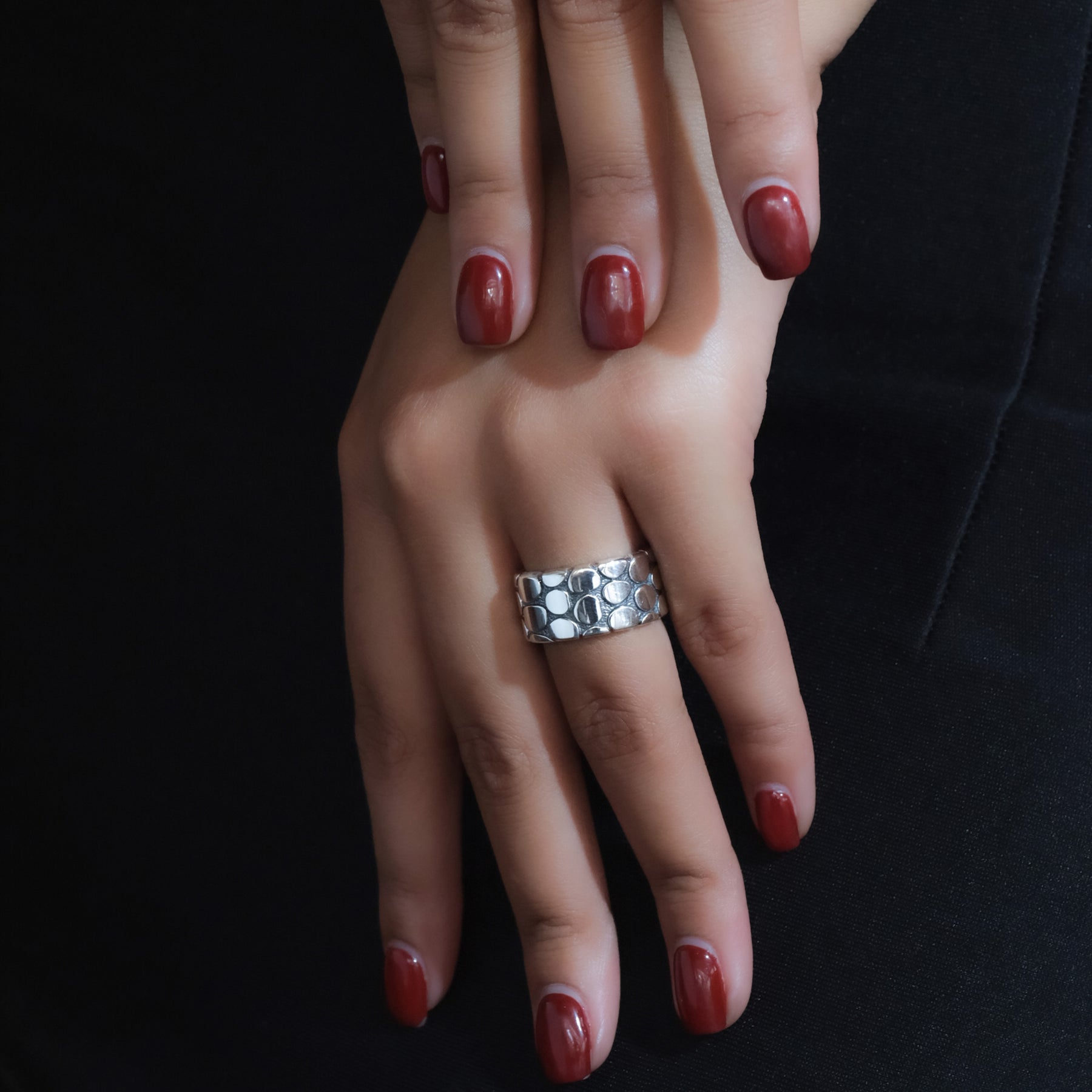 The oxidized silver finish adds an artistic contrast, accentuating the natural details of every piece. With its minimalist yet captivating character, the Pebble Collection is available in bangles, pendants, earrings, and rings — perfect for everyday wear or as a statement piece for special moments.
