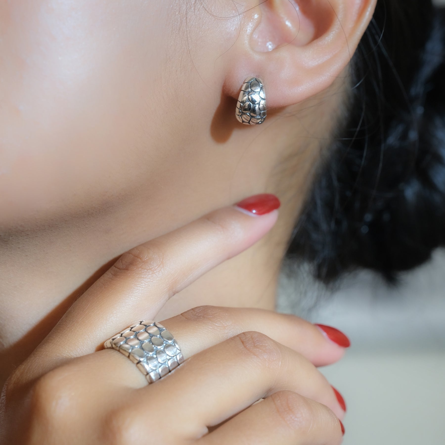 Inspired by the harmony of river stone stacks, the Pebble Collection showcases jewelry crafted from 925 sterling silver. Each design features organic textures reminiscent of natural stones—symbolizing strength, balance, and the simple beauty of nature.